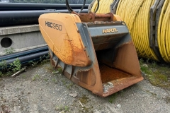 Duża (4000 kg) łyżka krusząca renomowanej firmy Hartl, wraz z płytą adaptacyjną, złączem S-70, przeznaczona do koparek o wadze powyżej 25 ton. Łyżka bardzo mało używana. Szczęki jak nowe – w doskonałym stanie.